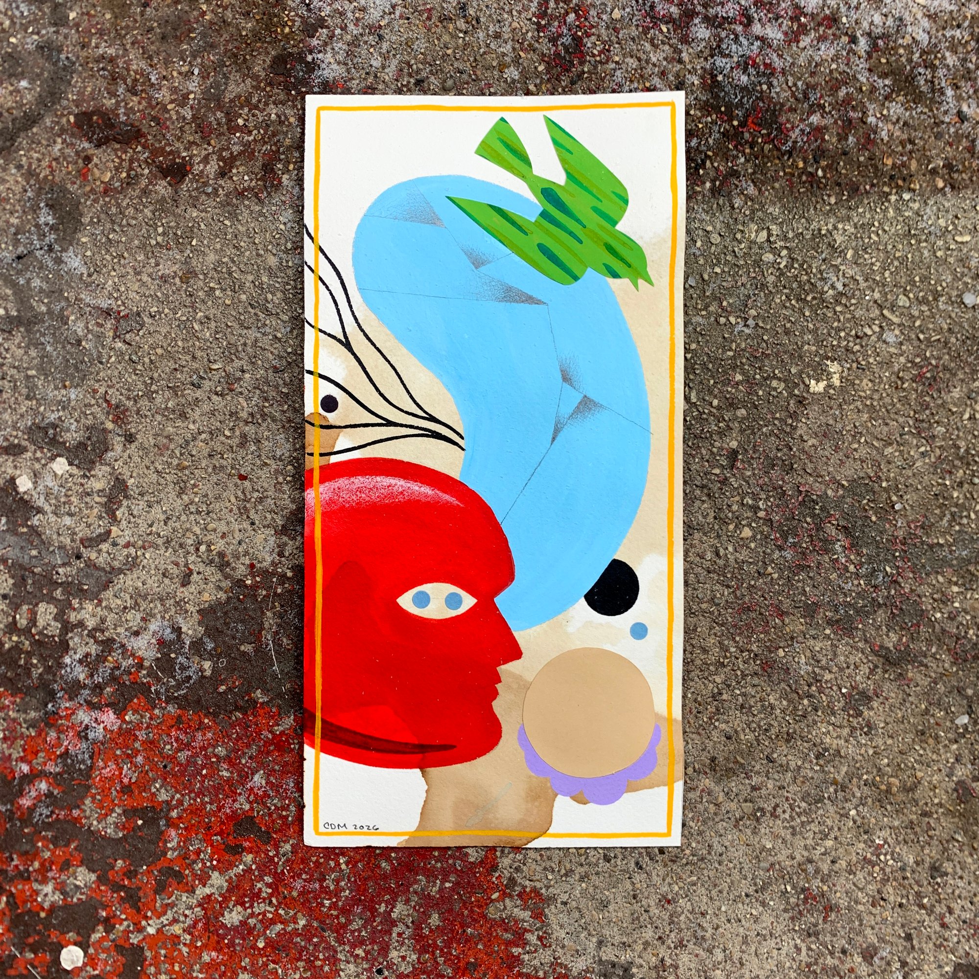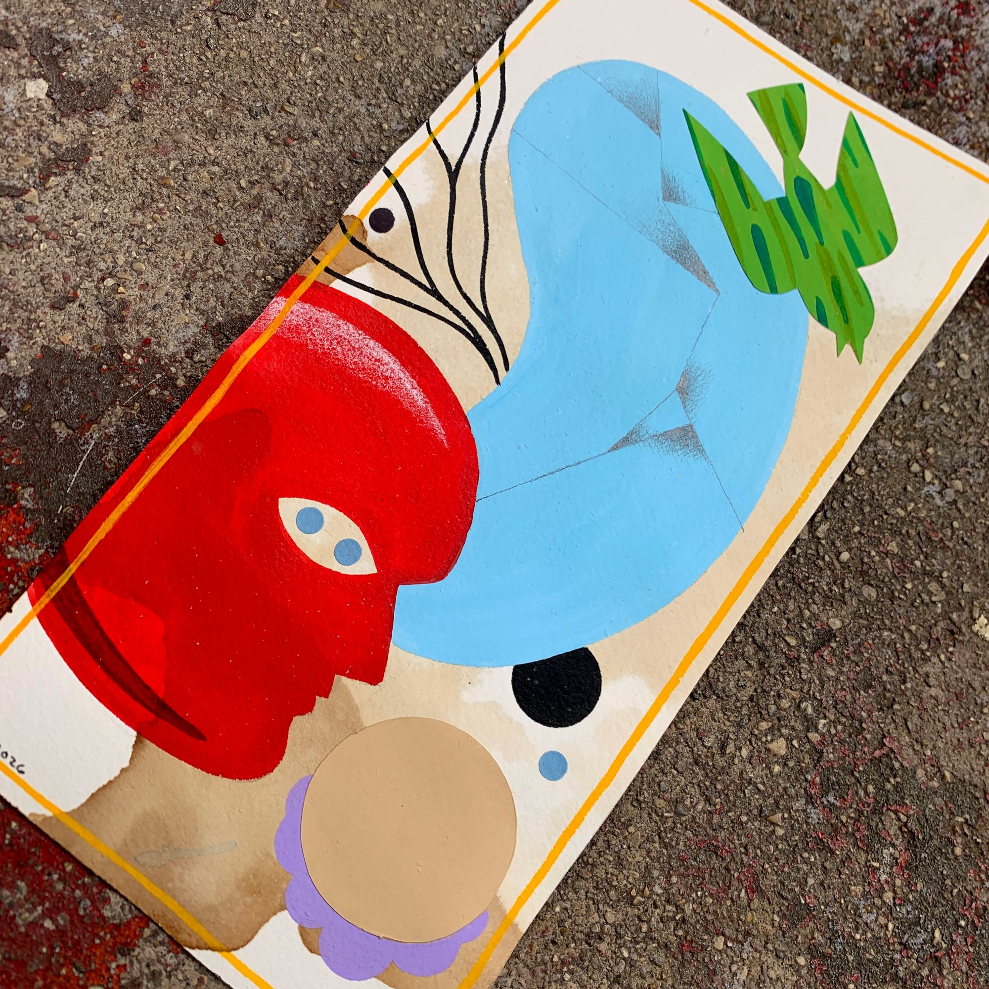 5.5x11". Gouache. Mixed media on cold press watercolor paper. Collage.
