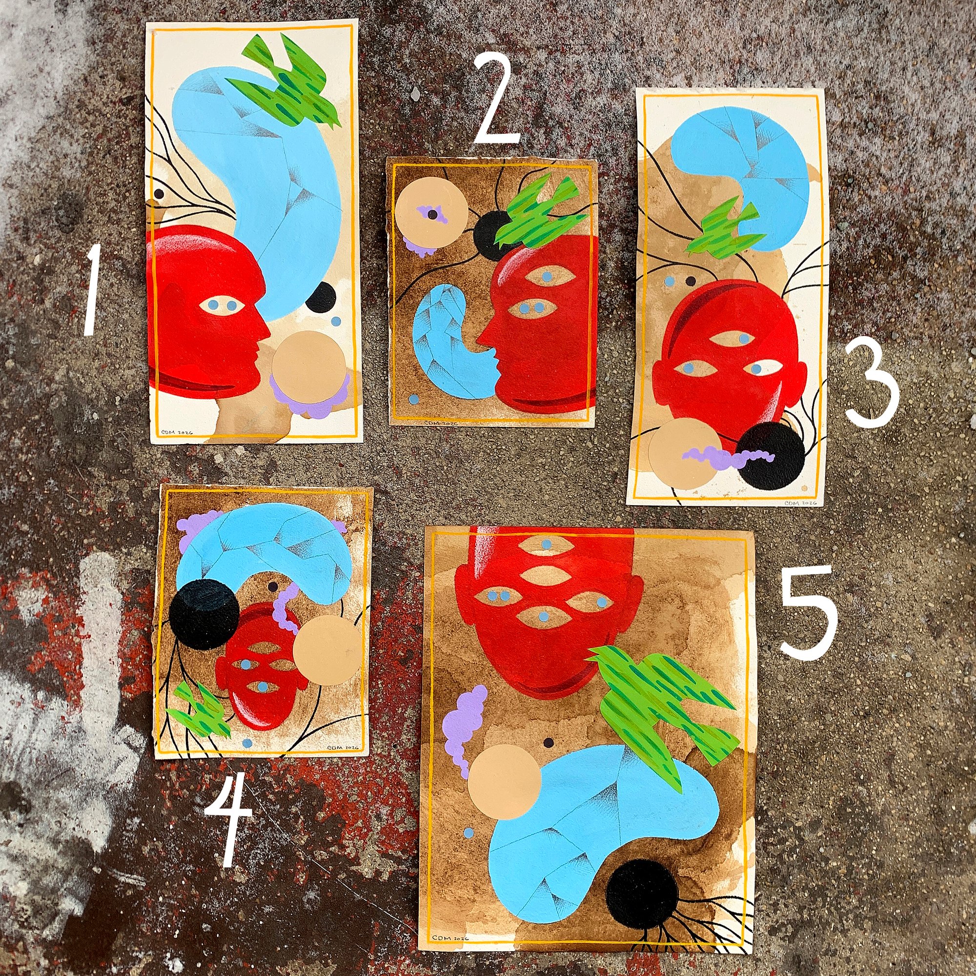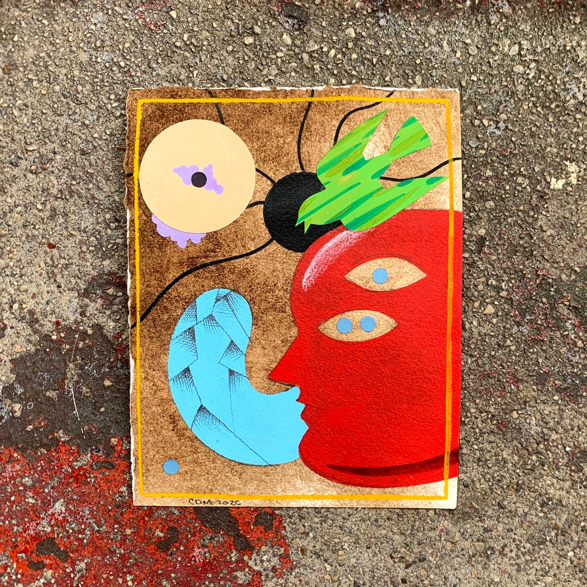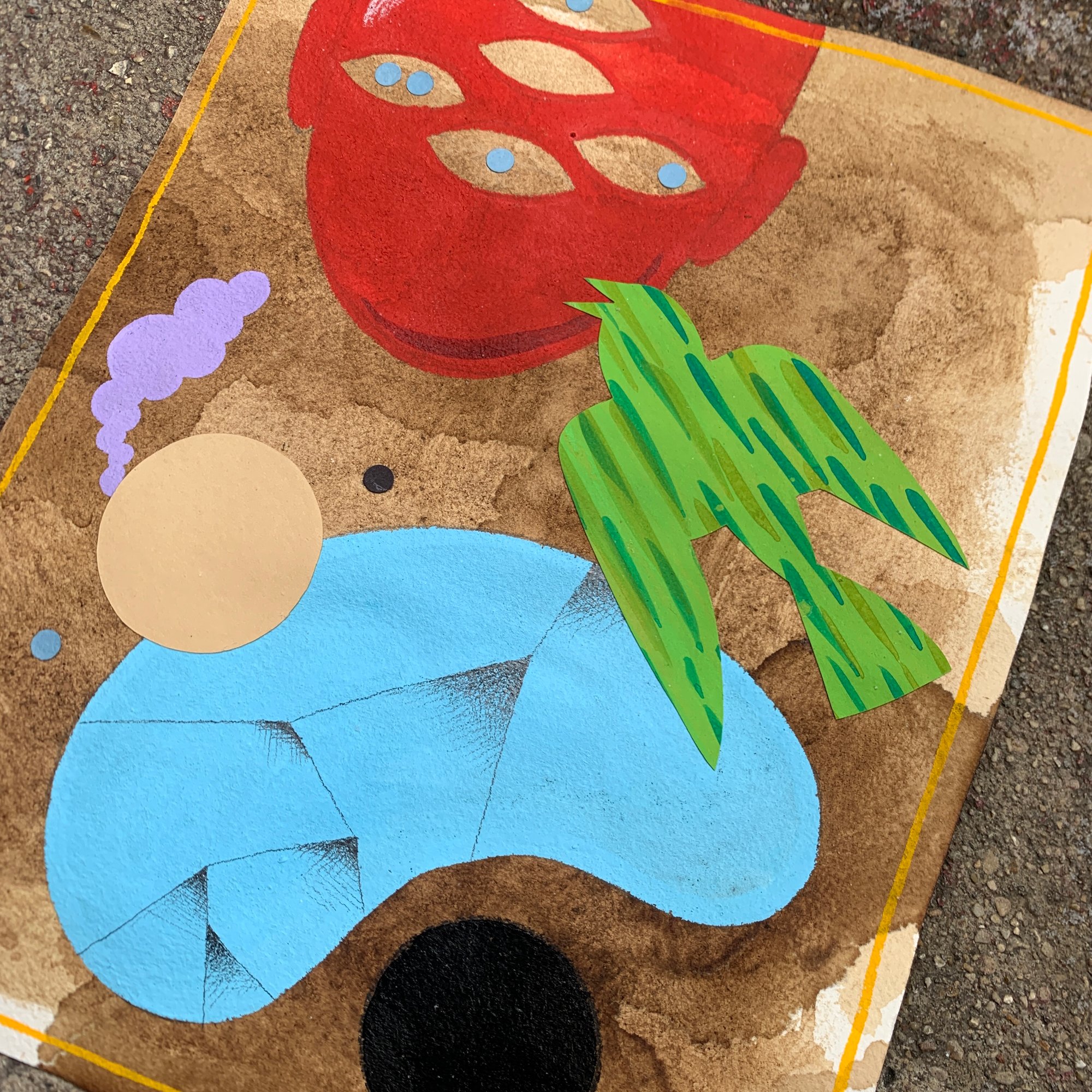 5.5x7". Gouache. Mixed media on cold press watercolor paper. Collage.