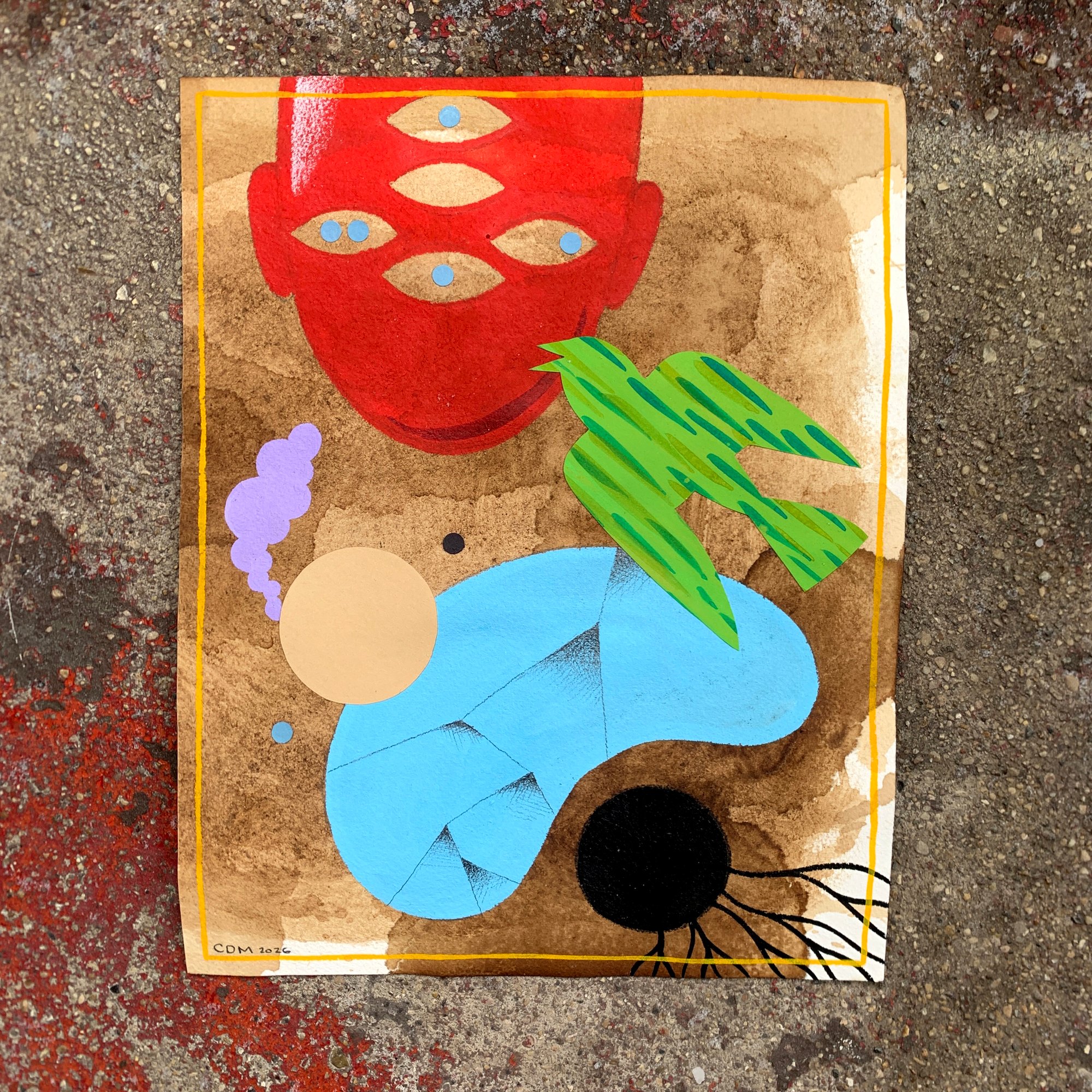 8.75x11". Gouache. Mixed media on cold press watercolor paper. Collage.