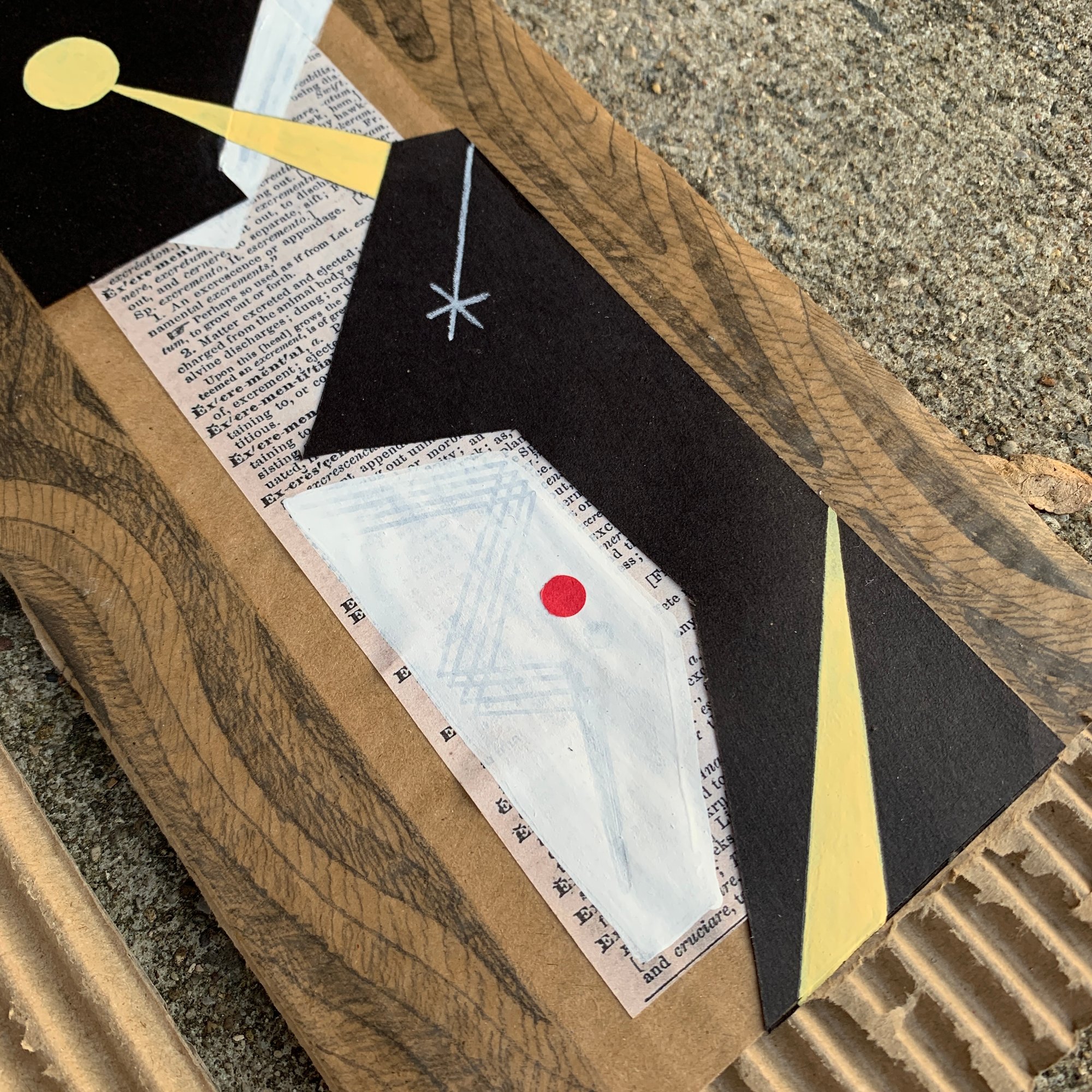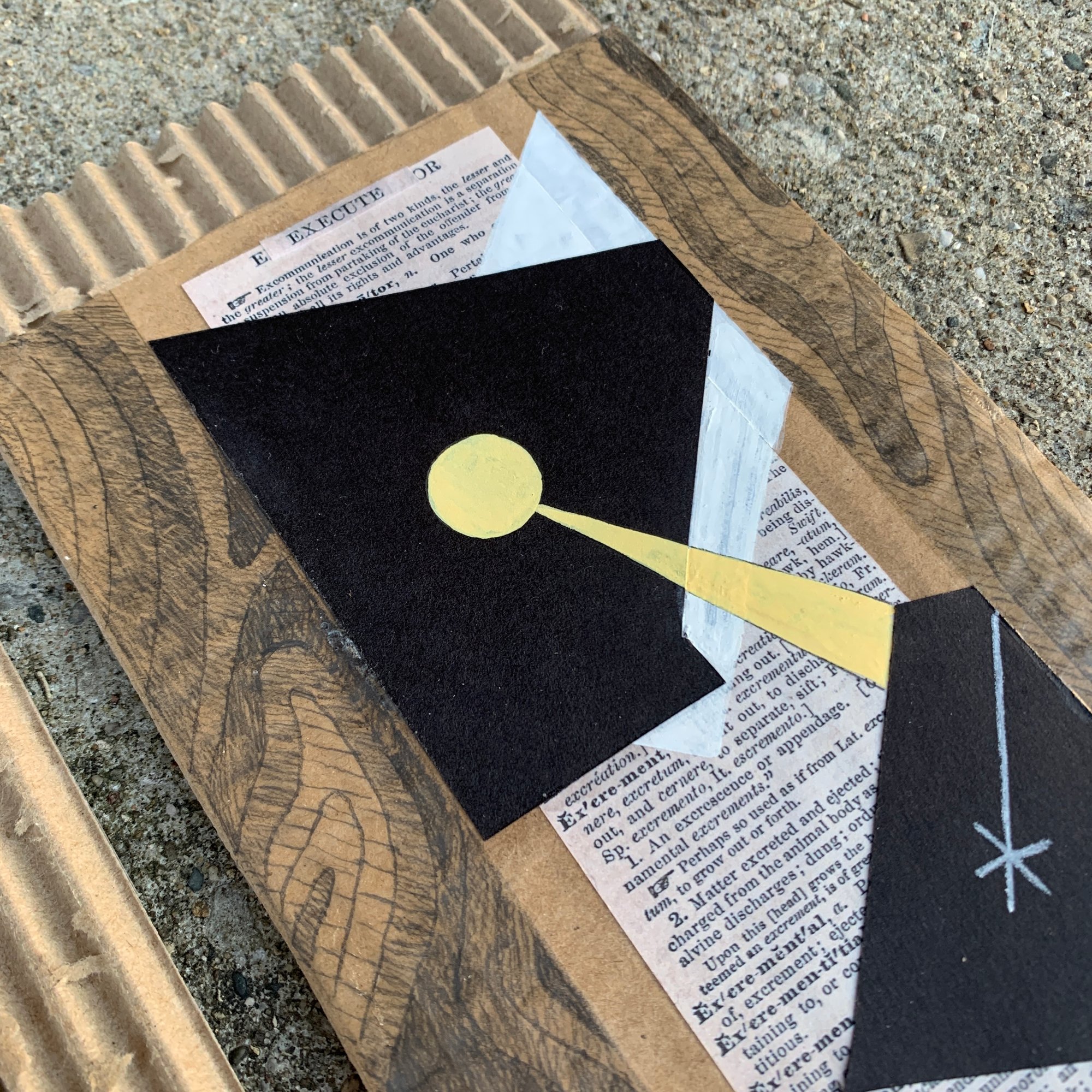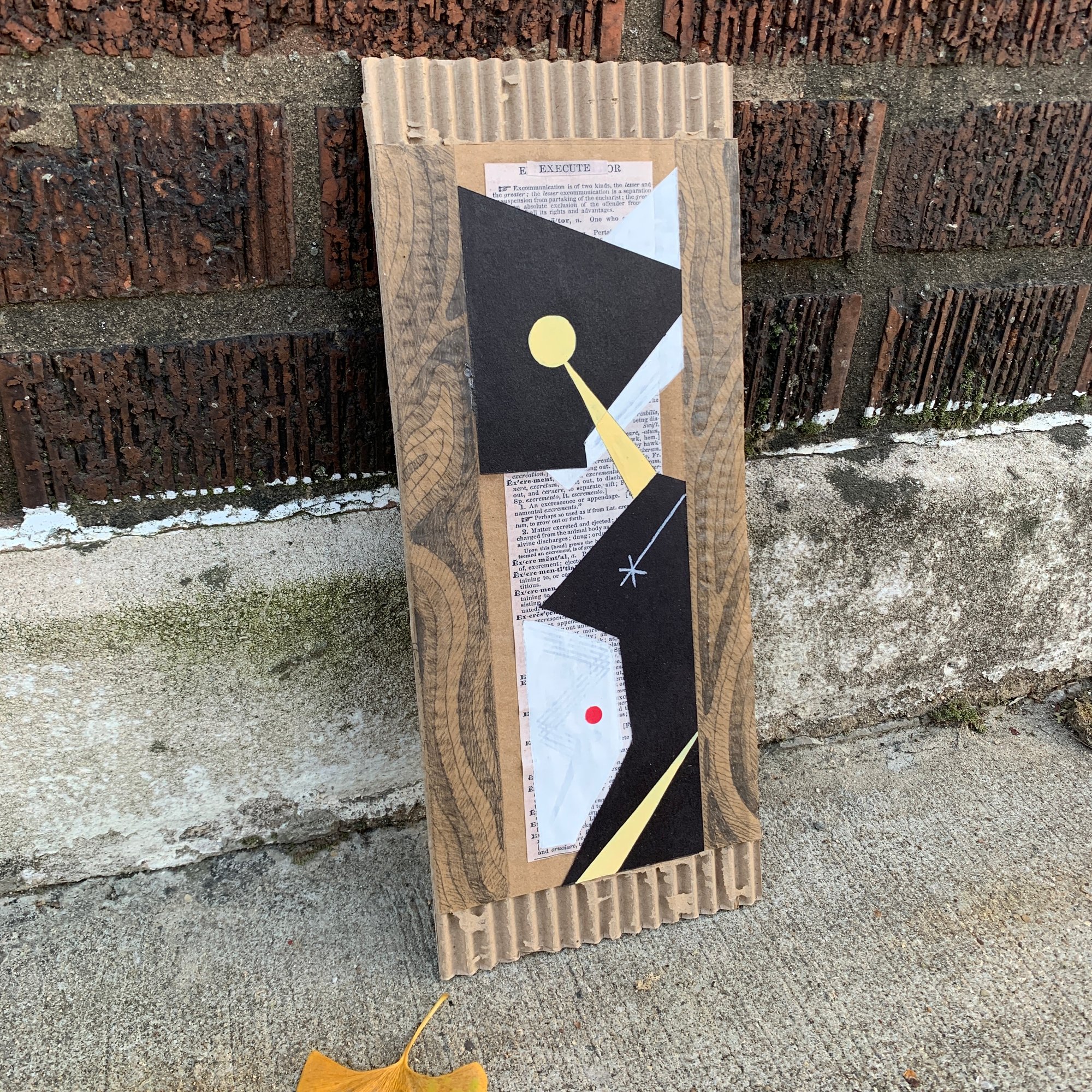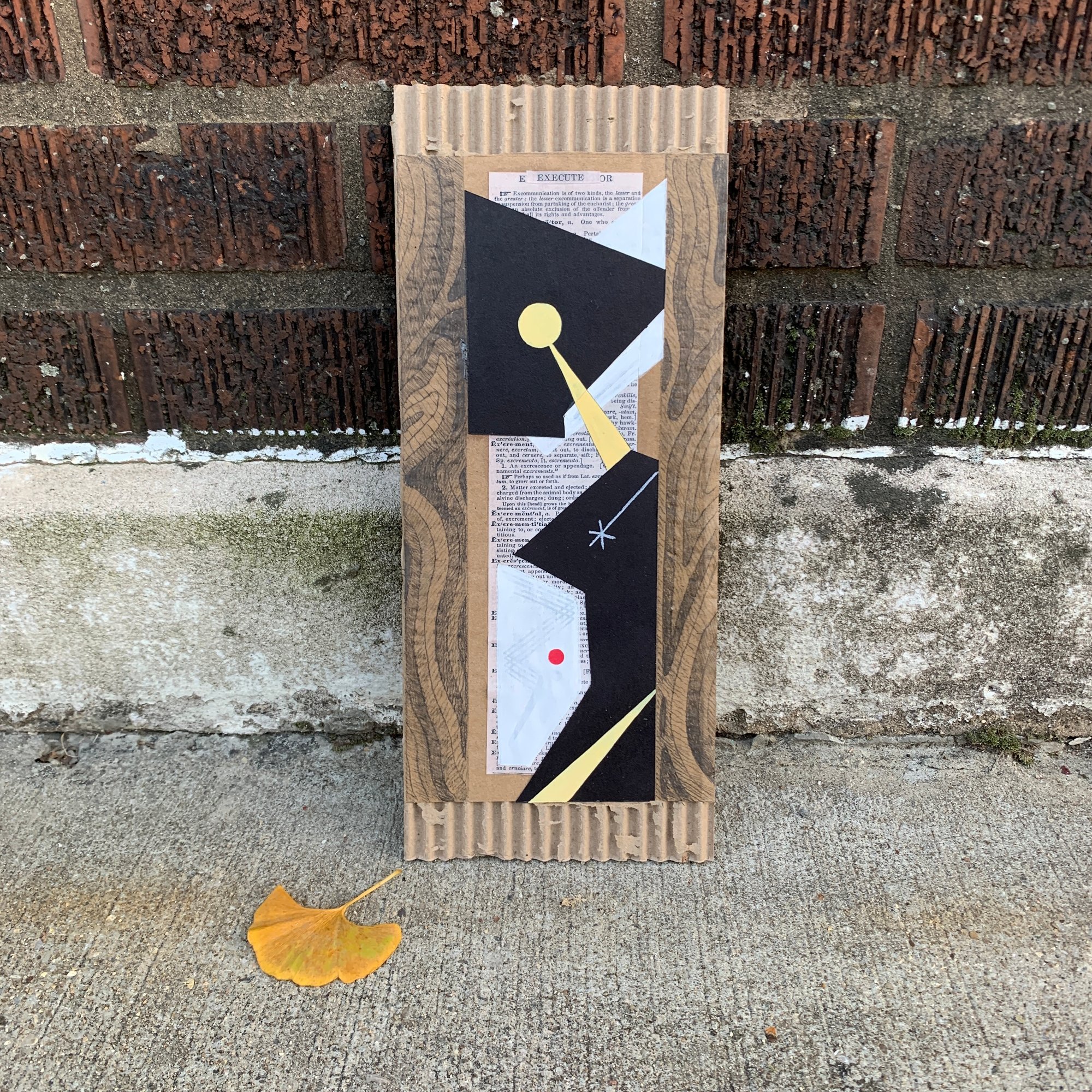 5x12”. Mixed media on cardboard. Collage. Bibliomancy.