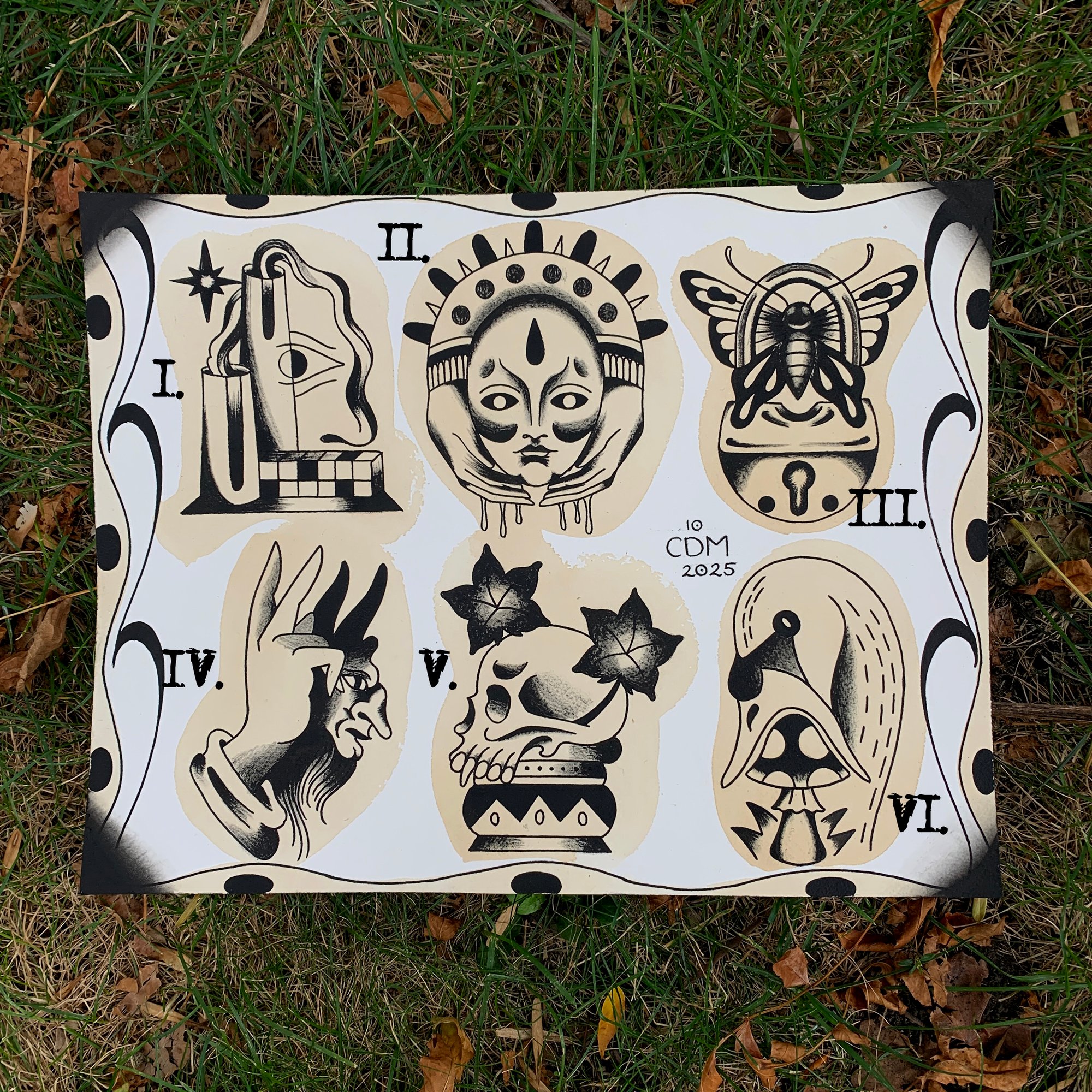 • The colors depicted in the image are just a suggestion. Colors can be customized according to your aesthetic preference (changes may incur an additional charge). I will tattoo them in color or black and grey but I will not tattoo them as linework only designs.